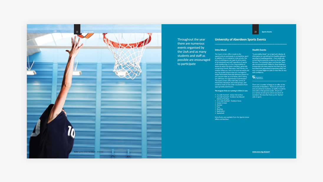 One lovely project was the Sports Handbook, a comprehensive and eclectic guide to facilities, sports clubs and activities available to the student population.