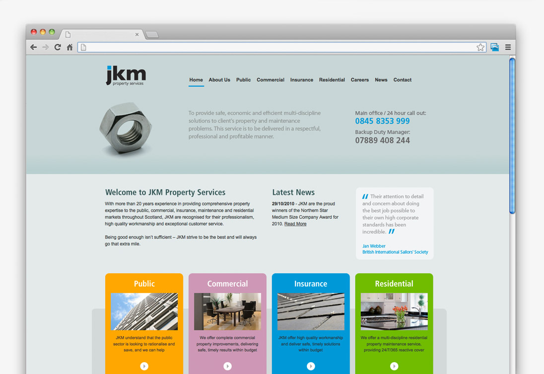 JKM Property Services were set up to provide a multi-discipline property maintenance service to commercial, public, insurance and residential clients throughout Scotland.