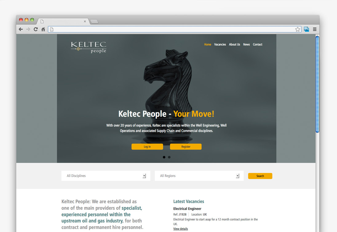 Keltec are leaders in Oil & Gas recruitment. They required a website which reflected their position in the industry and provides dramatically increased levels of control over their online business. It is user-focused, responsive, intuitive and ties in seamlessly with their existing offline database of thousands of candidates and vacancies.