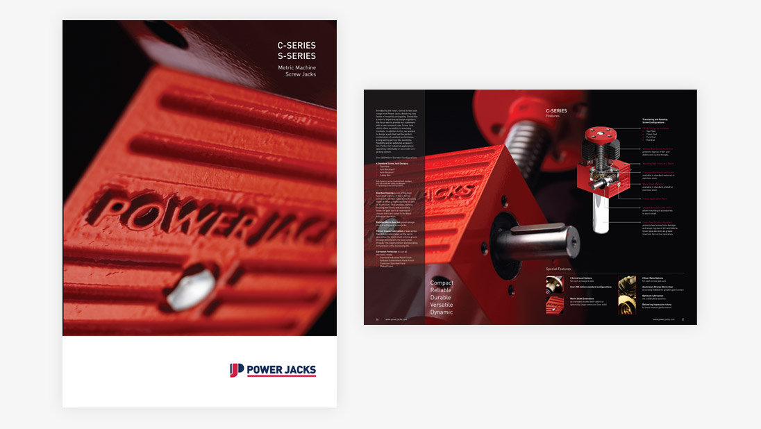 Following their move to a custom-built manufacturing facility and HQ, Raised by Bears worked with Power Jacks’ internal marketing team on the design and print of a suite of technical product brochures. Using photorealistic 3D models and 2D technical renders, we produced a range of marketing materials to support their business development and technical teams.